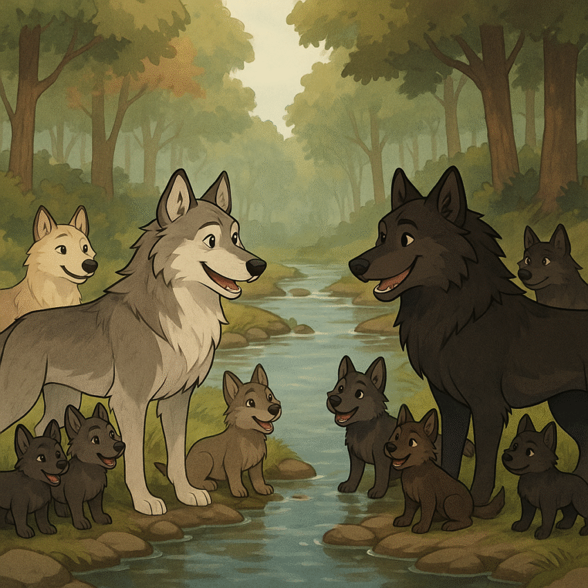 Les zůstal domovem, bezpečným a pokojným. Vlk Stín a jeho milovaná Luna vychovávali čtyři vlčata, Vegu, Oriona, Lyru a Altaira s láskou, trpělivostí a moudrostí, kterou si sami museli v životě najít. Dny ubíhaly jako voda v potoce, a z malých chlupatých kuliček vyrostli mladí vlci s vlastními sny, silou i otázkami. Jednoho rána, když…